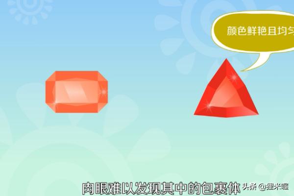 1、鉴定天然红宝石与合成红宝石的方法,合成红宝石颜色鲜艳且均匀,肉眼难以发现其中的包裹体,而天然的红宝石分布的包体和内裂的组合。