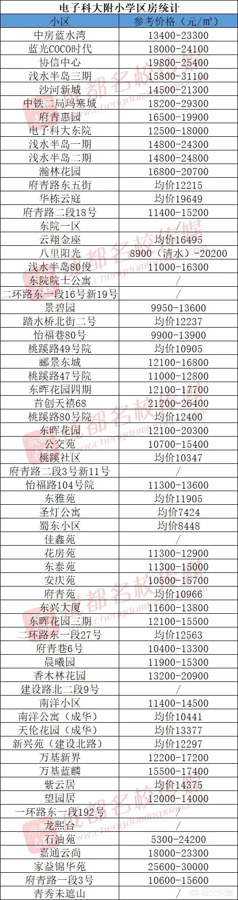根据往年划片看,电子科大附小的学区房有哪些?