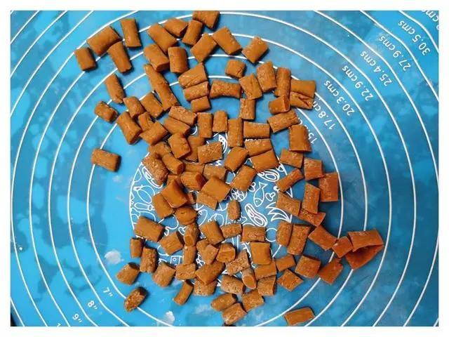 5.切成小粒,再用你灵巧的手搓成小丸子。我搓了一半没耐心搓下去,所以一半是圆形,一半是圆形