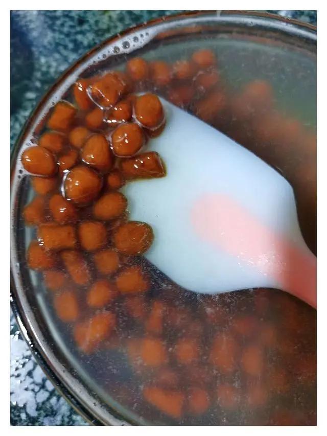8.煮好捞出,在凉开水中过冷,备用。珍珠这就做好了,一次ok,还是挺开心,接下来煮奶茶了。