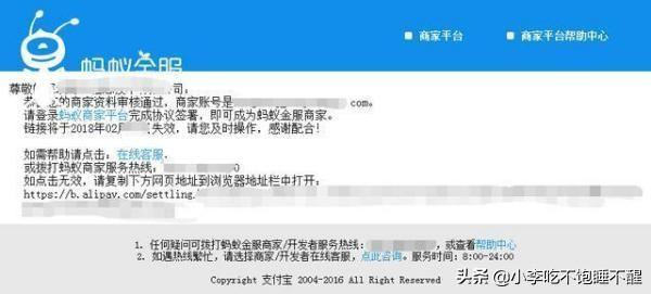提交资料后,等1个工作日,会收到蚂蚁金服的邮件,点击邮件链接,成为蚂蚁金服商家。