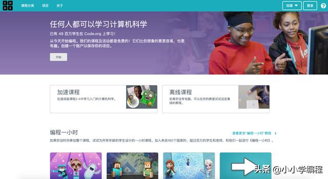 还有国外的code.org平台,这个平台提供了图形编程和代码编程的很多课程和在线工具,有4800万的学生在这个平台学习过,从4岁开始就有课程,非常适合孩子们入手,还值得一提的是他提供中文界面,一些视频虽然没有中文,但是也是简单易懂,顺便还能练练英语。