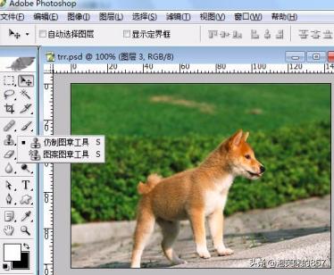 然后,打开一张素材图片,这里选择了一张可爱的小狗的图片,准备使用仿制图章工具复制图像区域,如下图所示。