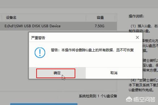 2、选择好U盘以后点击一键制作启动U盘,在弹出确定提示框后点击确定。
