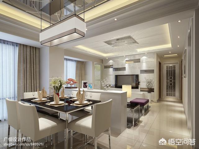 2.如果客餐厅比较长:玄关单独吊,客厅餐厅单独吊,客餐厅吊顶区分开。