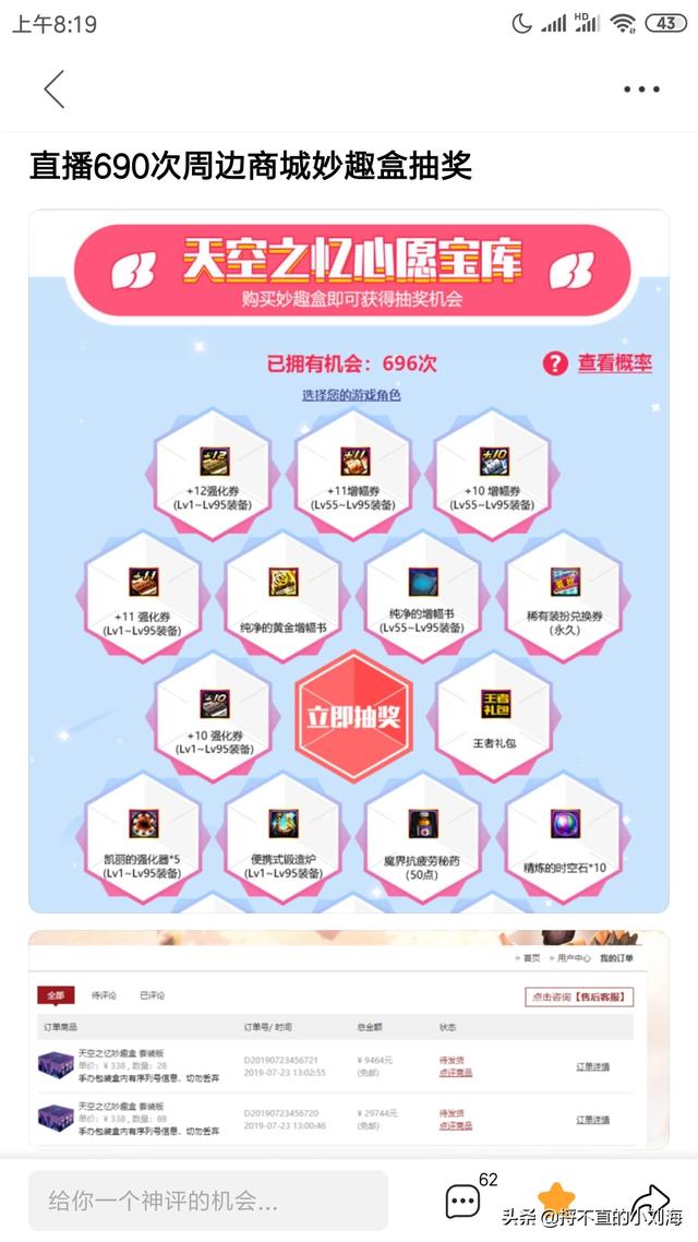 在这小刘海给大家分享一个神豪,一个人在这个活动就买了近三万块手办,追忆天空先放一边(因为快递还没到),打算先抽个690次奖。