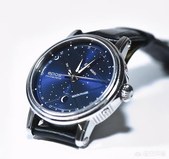 神秘、浪漫是我对这款爱宝时星月的评价,深蓝的盘面上点缀着荧光色小点,打造出夜空中的繁星,纵横交错的线段预示着夜空不仅美丽还有一丝神秘感,加上6点钟位置的月相,整个星空都被浓缩在小小的方寸之间,很好的满足男人心中所向往的趣味性。