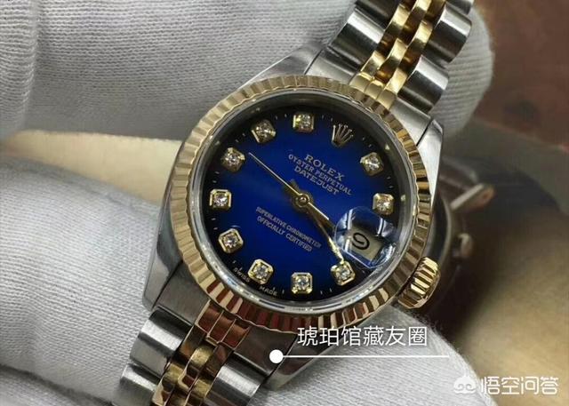 劳力士纯金钻石女表,外圈原装大钻石镶嵌,表头18k纯白金打造,表带925纯银手工制作,机械手卷动力,23x23表盘大小。