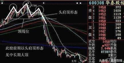 4、连接头肩顶形态,以股价下跌时最高点和颈线的垂直距离。