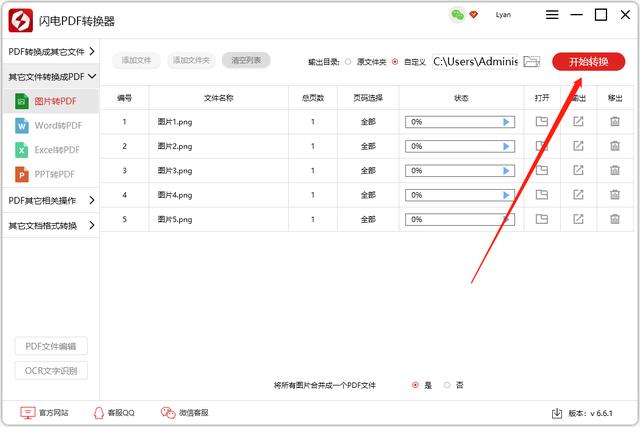 第三步、点击此按钮,可选择是否将所有图片合并成一个PDF文件。