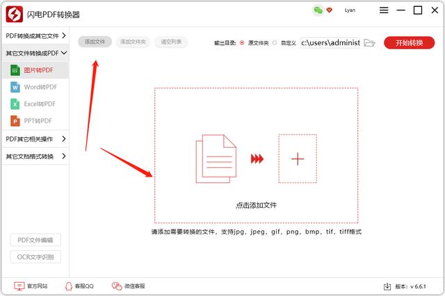 第二步、这里以图片为例,点击“添加文件”将需要转换的文件添加进来。