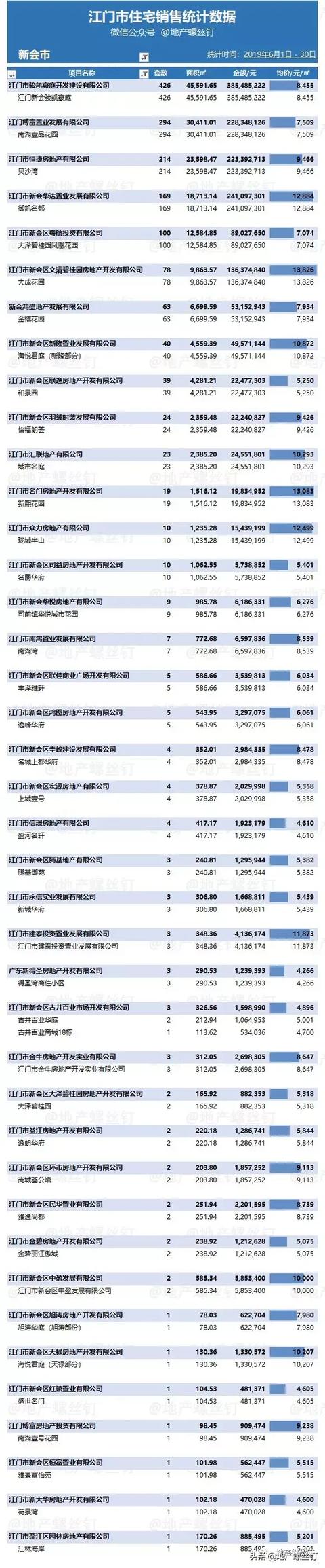 再来看看最近的网签数据,先来看蓬江区2019年6月网签数据