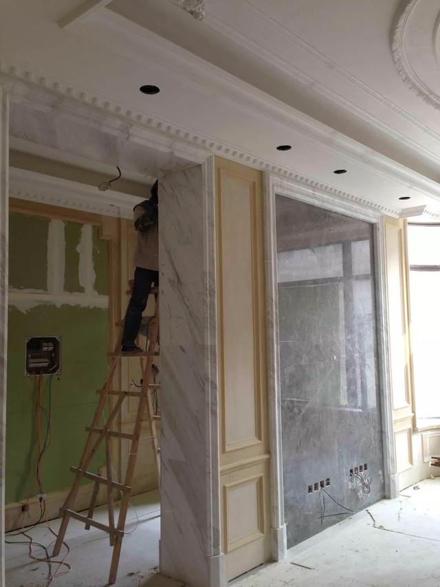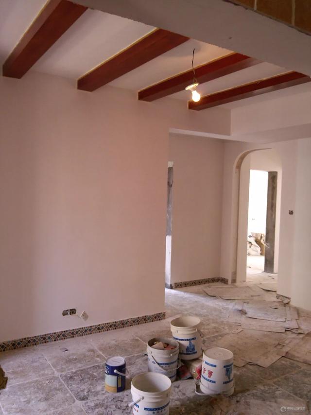 木工吊顶完成以后,油工开始进场,首先是墙面和顶板局部粉刷石膏找平,然后是墙面顶板的批腻子,批腻子完成以后就是刷乳胶漆了。