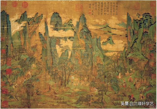 这是一幅传为唐代李昭道的青绿山水画,也有书籍记载为李昭道之父李思训所画。此画描绘的是安史之乱过后唐玄宗西逃至地形复杂的蜀地的青绿山水画。此画确实为二李所画山水的风格,为《唐宫夜宴》中的《千里江山图》的鼻祖,毕竟两幅作品都为青绿山水画。