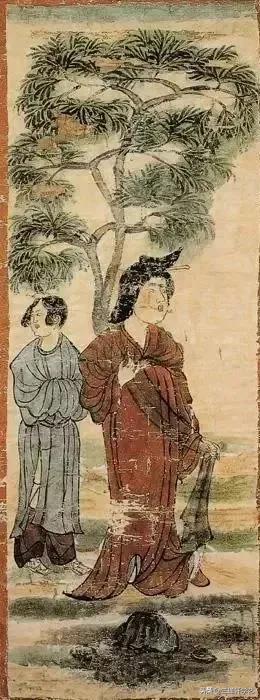 这是一幅很有敦煌特色的纸本屏风画,于新疆吐鲁番阿斯塔那墓出土。画的是在树下乘凉的仕女及侍从。不过这幅作品现在并不藏于国内,而是保存于日本热海美术馆。