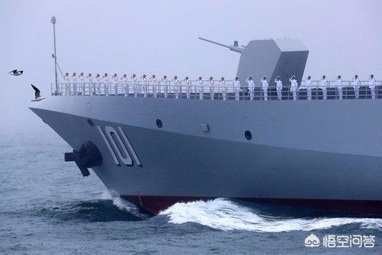 4月23日,在人民海军成立70周年国际阅舰式上,055型万吨大驱101号南昌舰,成了继潜艇群之后,驱逐舰群的排头兵,率领着052D型、052C型、052B型和051C型驱逐舰,迎着薄雾乘风破浪而来,以威武雄壮的方式,对外首次公开亮相,成了本次国际阅舰式上最耀眼的明星舰。