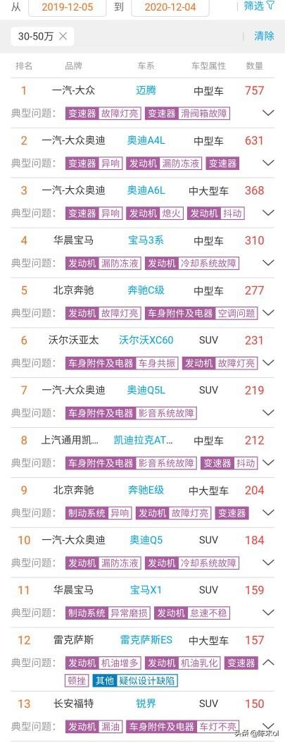 不过雷克萨斯ES作为轿车却上了榜,不过排名靠后,一年期的故障数为157例,主要投诉点在于机油增多,机油乳化,变速器顿挫等。按车型百分比概率来说出现问题的几率是很低的。虽然NX作为SUV没有上榜,但是NX使用的是同款动力,出问题的几率还是有的。不过跟排在前面的比起来,雷克萨斯NX的质量确实不错。