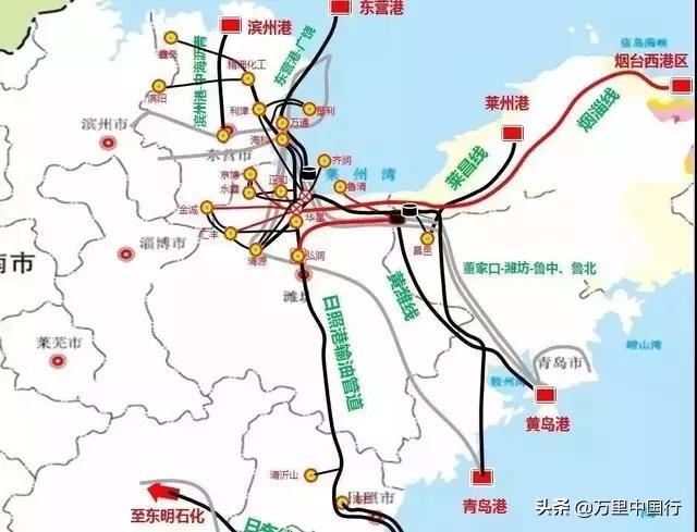 除了济宁,泰安,莱芜,枣庄,聊城,威海六个城市没有地练企业,其他的城市均有地练企业的分布,这简直就是石油的小王国了,放眼全国,有哪个省份的石油化工行业有这么发达的?再看一下下面这张石油管道的分布图: