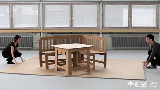 不用时,叠起来靠墙放在一边也不怎么占位子。由于是纸板做的,它比较轻,所以承重肯定不如木头和钢架了。虽然设计师还没有透露这套家具的具体承重范围,但估计微胖界的小伙伴坐上去也是够呛,更别说超重的了。