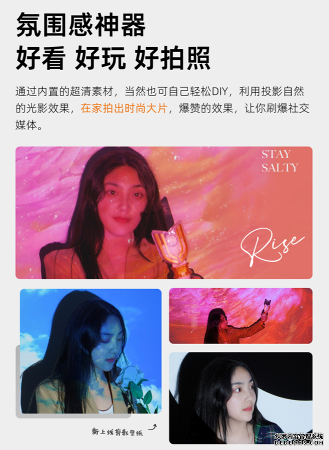 另外,当贝NEW D3X内置当贝氛围APP,拥有多种独特新颖的拍照素材,想拍夏日清凉、奇幻宇宙、创意艺术等主题它都有;在宿舍拍、在卧室拍、在出租屋,任何地点都能秒出大片。