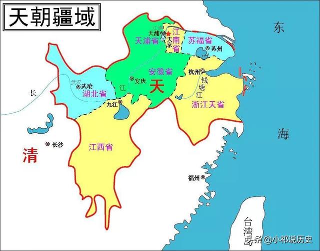 (太平天国疆域与清朝对比图)