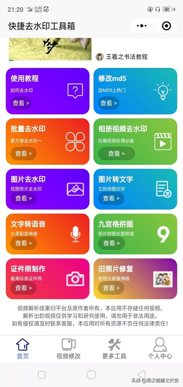 手机端我一直用微信小程序中的快捷去水印工具箱。它里面含有多个小软件,即有图片去水印,还有视频去水印,图片批量去水印等多种工具,操作十分简单方便。