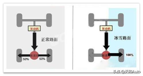 开拓者共有两个版本,低配版采用的是第一类「single_单组多片式离合器限滑差速器」分动。其功能可以实现适时四驱模式的前后桥分动,以及前驱和四驱的切换;但是在前后桥各自获取动力之后,动力则会通过开放式差速器自由的往两侧车轮分动。一旦车轮打滑则只能借助【电子限滑系统】提升脱困能力,概念为某一侧车轮打滑主动为其刹车,动力无法输出到该车轮则会传递到另一侧,分动比例为“100:0或0:100”,但是制动力往往不强(脱困能力差)。