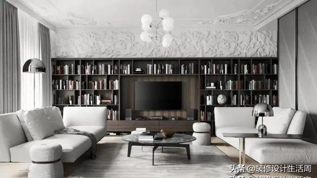 2.电视柜做成收纳和书柜一体的,很适合家里没有书房的户型。⬇️⬇️⬇️