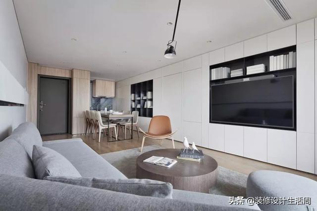 2.不要选择颜色太深的门板,因为整墙的电视柜面积比较大,如果颜色太深,客厅会显得很压抑。
