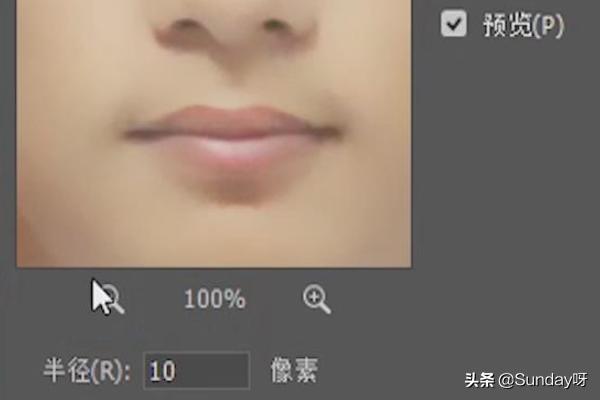 2.依次点击上方的“滤镜”、“模糊”、“表面模糊”,设置表面模糊的半径为十像素。