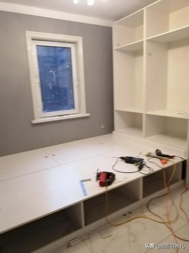 由于是精装房,箱体做的太高和整个装修也不搭配,可以说不伦不类,说是榻榻米,其实就是一些高箱子而已,失去了榻榻米应用的特点。