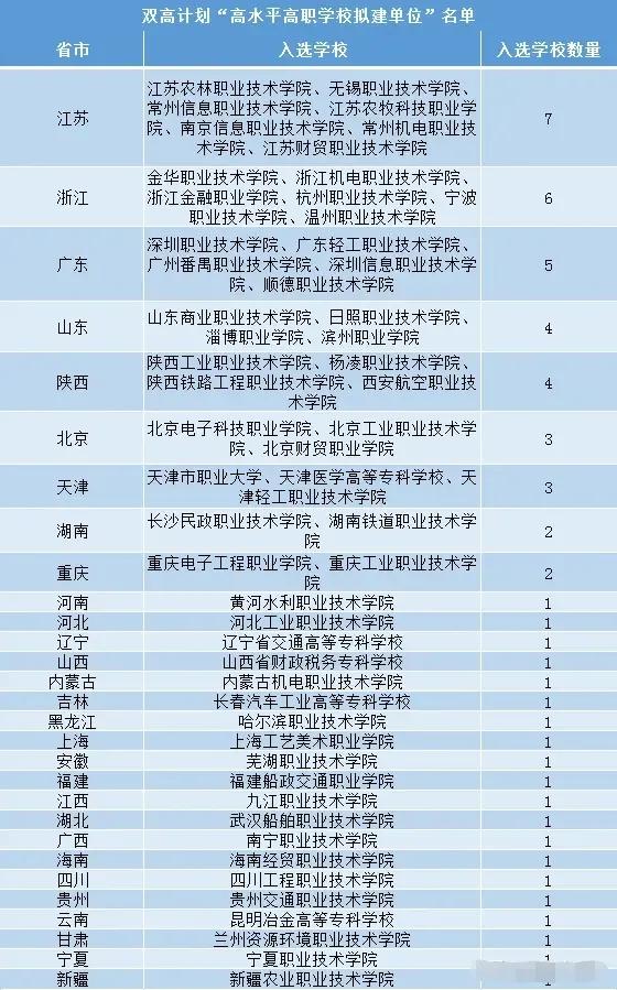 中国56所高水平高职学校名单如下,看看你所在的省份有几所学校?
