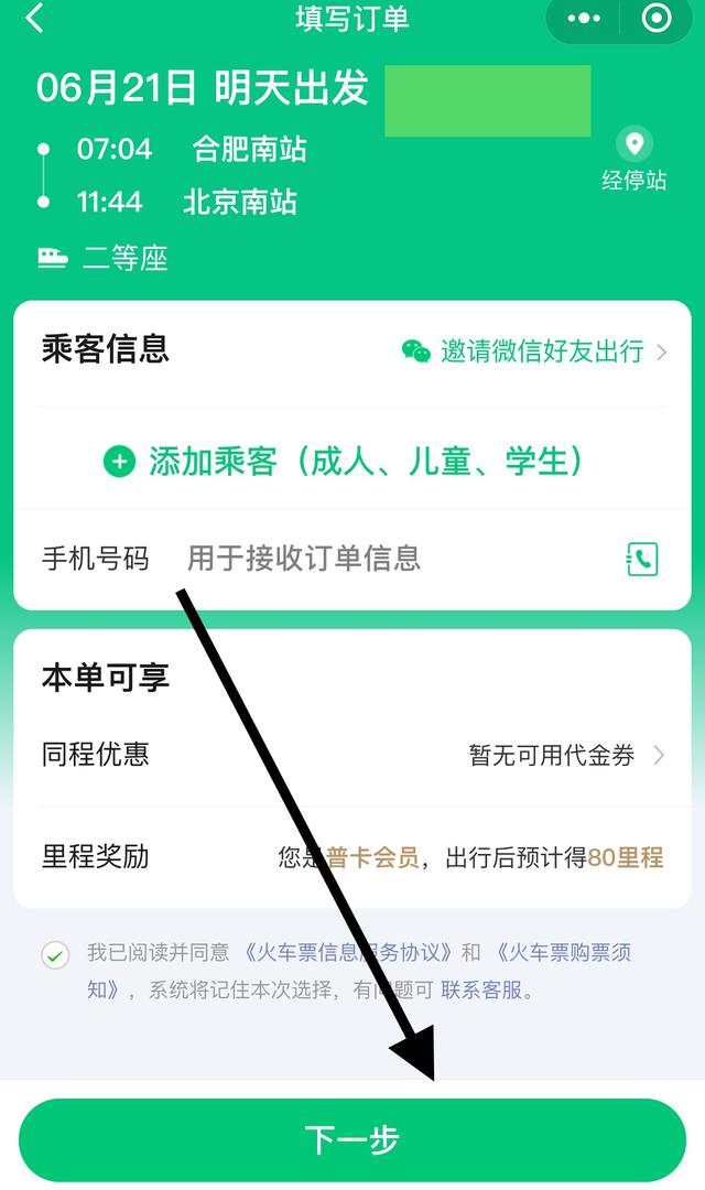 8.在下图页面添加出行人的身份信息,回到第七步,点击 下一步 选项,付款就可以在手机上订票了。