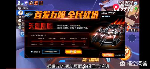 从页面我们可以看到,测试服中的砍价活动显示的是以折扣直接购买天蓬,当有一亿次漂移次数的时候,天蓬可以以7077钻石的价格直接入手。如果这个措施上线正式服后,基本上所有有打算的小伙伴充一个648就可以拿到永久天蓬了。活动刚公布的时候,所有人一度都认为这是天美历史上最良心的A车了。