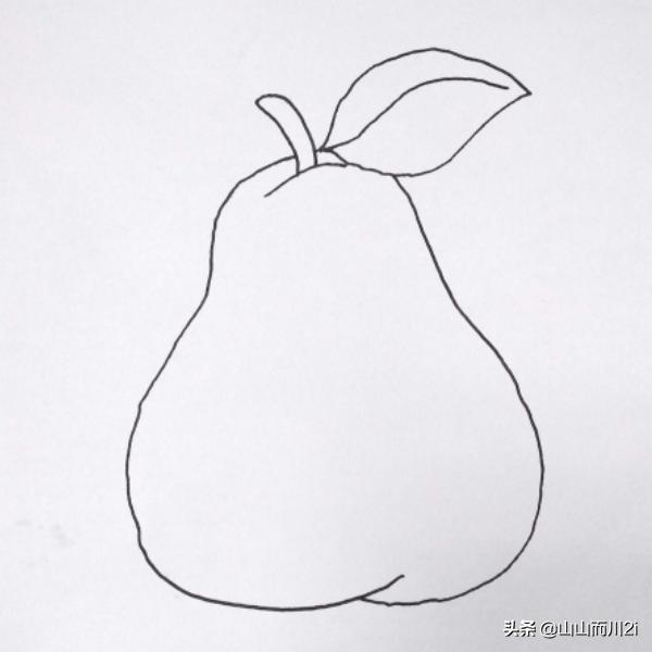 1、我们可以以梨为原型来画,先画出水果的瓣。