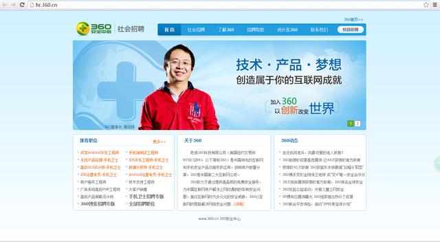 奇虎360公司官方的招聘信息可以通过官方网站获得: