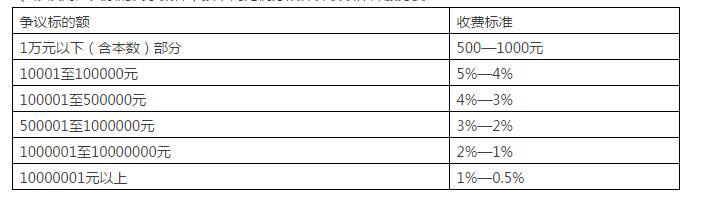 在收取基础费用1000-8000元的基础上再按其争议标的额分段按比例累加计算收取: