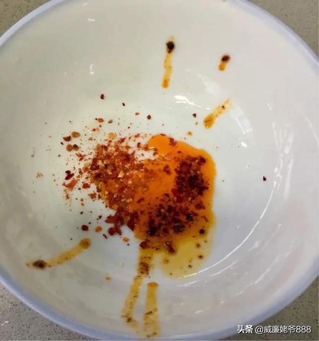 1,用一大碗,加入辣椒油,和辣椒面,盐