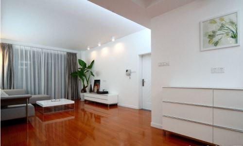 这也是一间没有吊顶的客厅,整体的风格是现代简约的路线,并且这种装修非常的节省资金。将地面蒲城了木质地板,看上去很有质感。因为没有吊顶,客厅顶部也是全部粉刷成了白色,墙壁也是统一的白色,这种方式使客厅更有整体感,空间看起来也变大了。并且都用白色并不会因为时间久了就会过时,在墙壁上添加装饰品也不用太考虑配色的问题在客厅顶的一边装上三盏小灯,温和的灯光也是很好的装饰。