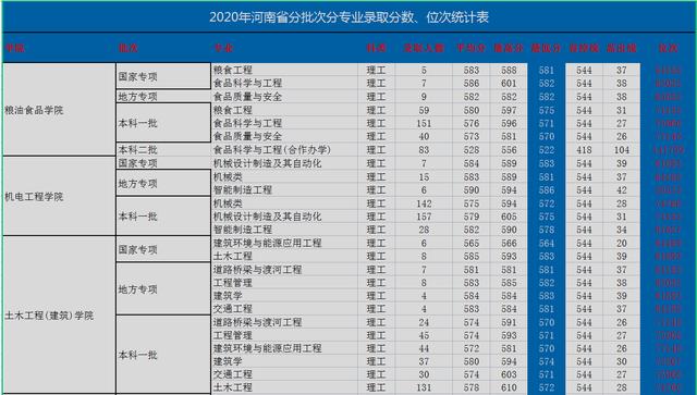 老马有话说:1、尽管说在河南省内排名不是很高,但学校在粮食行业的地位毋庸置疑,它也是河南少数几所实现了省外一本招生的高校之一。