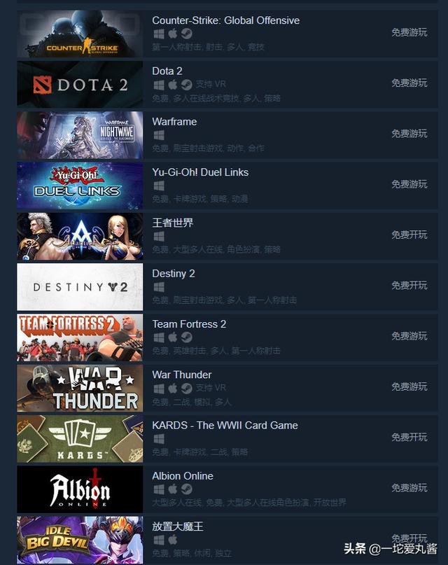 现在很多游戏都是在steam上下载,根据steam上的免费游戏的排名,我来给题主推荐一下哈~