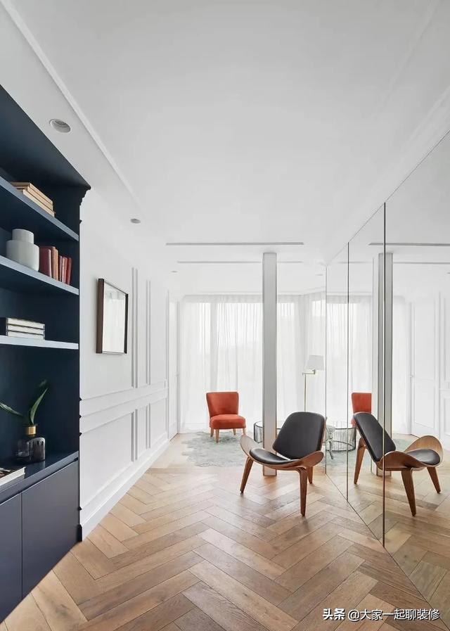 空间里采光是非常重要的,空间的色彩搭配也是不可或缺的,明亮的色彩能够让人放空自己,心情愉悦,排除一切不开心的事情,做下来喝上一杯咖啡,岂不是解忧的一剂良药,温馨自然的木地板,一面墙大镜子能够很好的延展了空间感,本来狭小的空间变得宽敞。