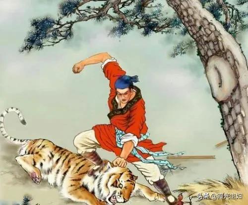 上了山之后,天已渐黑,酒劲儿也再次上来了,无奈他只好找个大石头休息一下,没想到却睡着了。过了一会儿,一阵风呼啸而过,武松惊醒,酒也自然醒了不少。等到他视线清晰时这才发现,有一只色彩斑斓的老虎向他扑来。