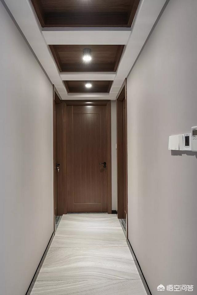 ▲走廊在“吕字形”的吊顶+明装筒灯的设计下,以浅灰色的前面地面基础,装配出一个闲适轻松的过道体验。