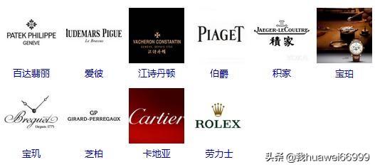 比较常见的一个榜单是这样的,包括百达翡丽、江诗丹顿、宝玑、爱彼、宝珀、积家、芝柏、伯爵、卡地亚、劳力士。