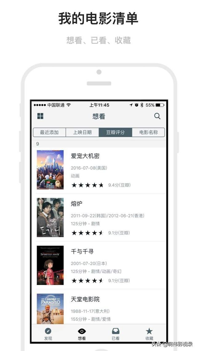 APP特色:推荐你精致的榜单,减少你的选择困难,影评都是经过审核后的良心之作,同时可以发表自己的评论和想法,记录自己的观影历史。