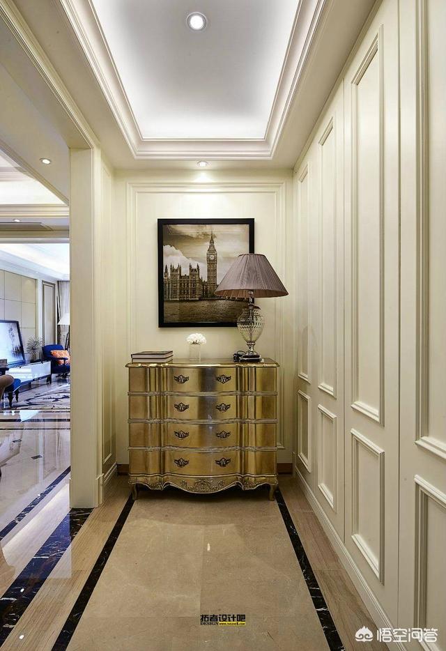 如果距入户一米的区里有一面墙,首先是考虑做柜子,通过柜子来达到收纳的作用
