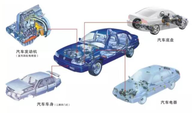 关于汽车的组成,教科书曾经有两种表述。第一种:汽车由四大部分组成,分别是发动机,底盘,车身,电器(电气)。第二种:汽车由三大部分组成,分别是发动机,底盘,车身及附属装置。第一种表述比较普遍。无论是四大部分还是三大部分,一旦你熟悉了汽车构造,你就会明白,发动机,底盘,车身,这是汽车的三个主要部分,很多电器设备或电控系统其实是分别分属于发动机,底盘,车身这三大部分的,也有不分属于这三大部分的电器设备,如照明装置,信号装置,供电设备等。以电瓶(蓄电池)为例,它既给发动机供电,又给汽车其它用电设备供电,可以说它属于整个汽车。下面我对这四大部分的做一个简要的说明。
