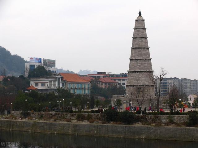 文峰塔又名文笔塔,原为5层木塔,始建于明代万历元年,后被洪水冲毁。1839年(清道光19年),都匀人士于原塔基上修建7级密檐式石塔,改文笔塔为文峰塔。文峰塔塔高33米,塔底直径9.5米,有正方形青石塔台。