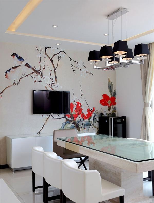 这是近年来比较流行的电视背景装修方法。因为是手工完成的,这样的电视背景墙绝对是独一无二的,彰显了主人家的独特与个性。和购买材料回家贴相比,主人可以选择自己喜欢的图案,完全百分百订制。